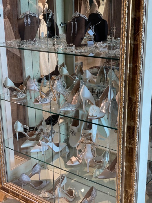 В салоне также представлен широкий ассортимент свадебных аксессуаров: бижутерия, диадемы, перчатки, сумочки, фата и свадебные туфельки.