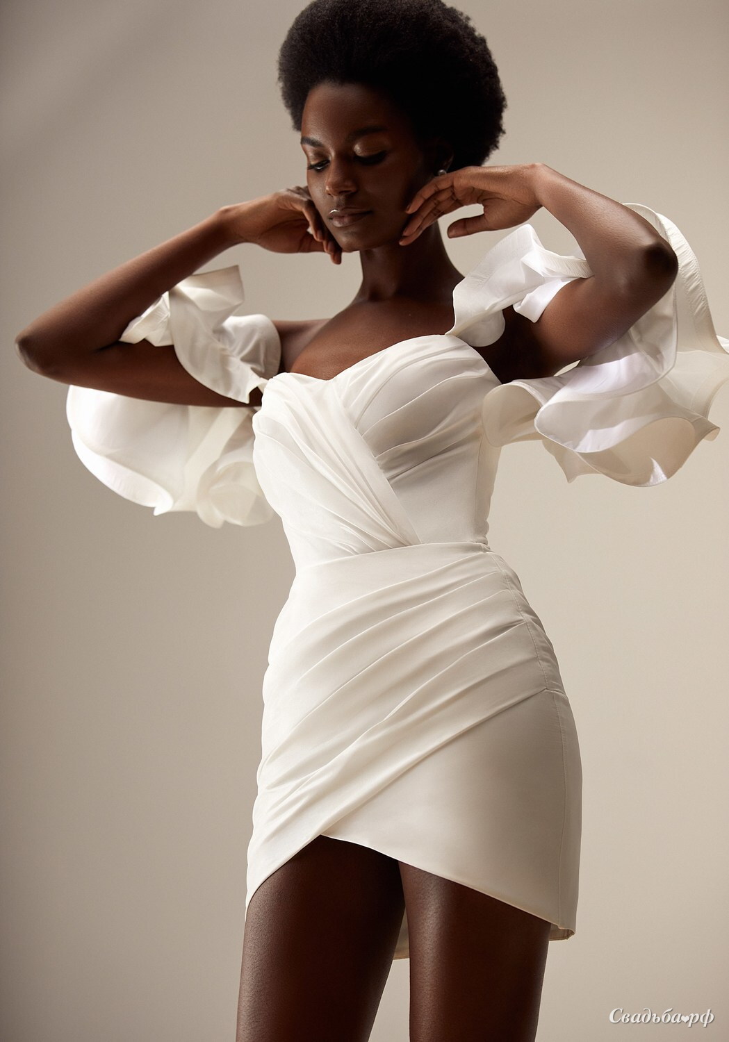 Короткое свадебное платье с рукавами